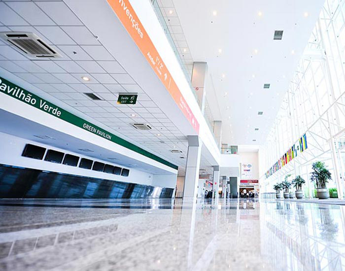 巴西圣保羅北方展覽中心Cidade Center Norte是圣保羅面積最大的展覽中心,同時也是拉丁美洲最重要的展覽中心,它位于圣保羅城市北區(qū),建筑面積超過98,000㎡,內(nèi)部安裝有先進的設(shè)施,符合各類型活動的場地及設(shè)備需求。圣保羅北方展覽中心共建有1個大堂、4家餐廳、5個展館、22間會議中心:大堂面積達到4,562㎡,可同時進行5個展會+22個小型活動的注冊、簽到、招待工作;4家餐廳的用餐環(huán)境優(yōu)雅,可容納1,610位現(xiàn)場人員同時用餐;5個現(xiàn)代化展館全部安裝獨立的空調(diào)系統(tǒng),確保展館涼爽舒適,展覽中心高7.5米,共計有75,758㎡的室內(nèi)展覽面積,分為藍館、白館、綠館、紅館和黃館,五彩繽紛、整齊劃一、并排分布,構(gòu)成圣保羅北方地區(qū)一道引人注目的風(fēng)景線;22個會議中心配備先進的音頻、視頻設(shè)備,可同時容納4,500位參會人員,是舉辦會議、論壇或研討會的理想地點。