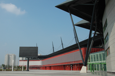 展覽中心:主體建筑兩層,輔樓六層,建筑面積16.68萬平方米。由兩個(gè)展館、會(huì)議室、餐飲設(shè)施、辦公室及商店等組成。兩個(gè)展館共可設(shè)置3,394個(gè)9平方 米的國(guó)際標(biāo)準(zhǔn)展位,展館跨度102米并設(shè)有五道活動(dòng)隔段,可把展館分割成6個(gè)獨(dú)立展覽會(huì);二層展館為無柱間隔。車輛可直接駛?cè)雰蓚€(gè)展館布展或撤展。