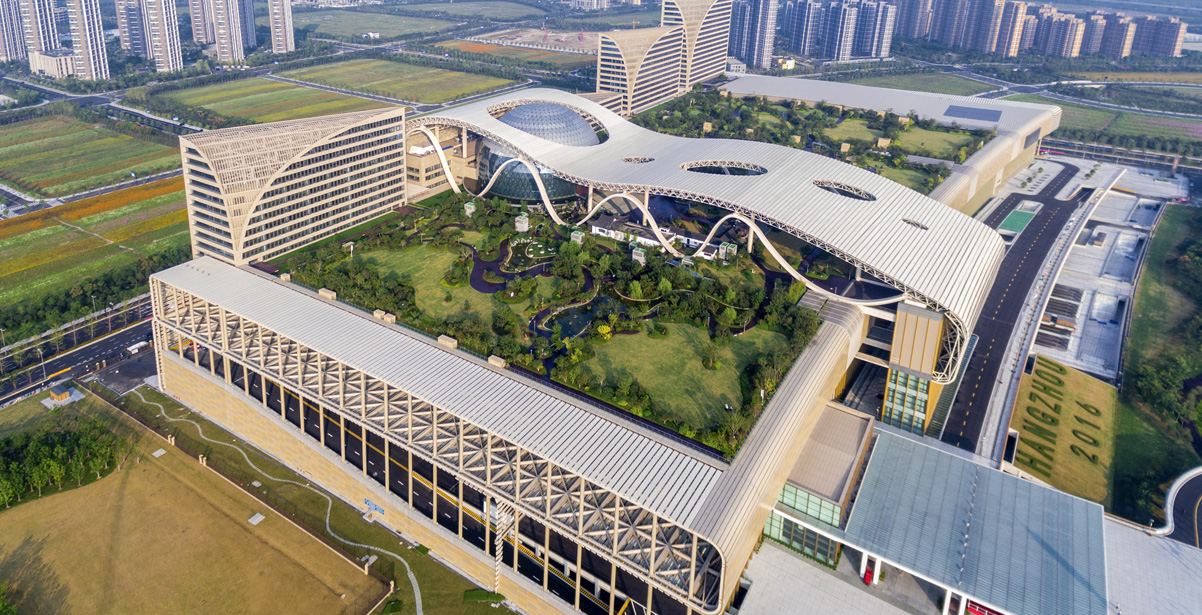 To the east of Qiantang Third Bridge and on the south bank of Qiantang River stands Hangzhou International Expo Center (HIEC), the main venue of 2016 G20 Summit holding both modern facilities and the human spirits of classical Jiangnan. With a convenient location and a space of 850,000 sqm,