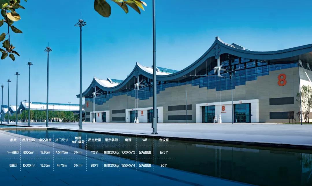 展覽中心由七個標準展廳、一個綜合展廳及室外展場組成,室內(nèi)展覽面積71000平方米,展廳均為雙向懸索結(jié)構(gòu)無柱式設(shè)計,可搭建國際標準展位4000余個,各展廳均配備獨立的接待、會議、管理等輔助功能用房,重型設(shè)備可直接進入展館,滿足各類展覽 活動的多樣需求。室外展場面積50000平方米,全水泥澆筑方正平整,適合舉辦各種大型展會、文藝演出、新車發(fā)布、體育賽事等活動。