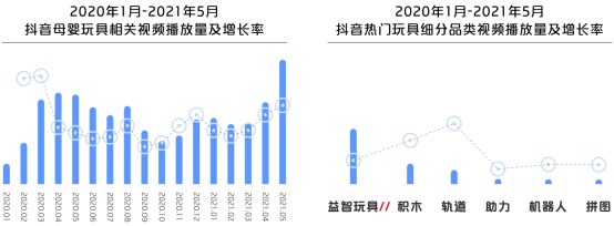 抖音平臺上兒童玩具和益智玩具話題視頻在母嬰類視頻中長期熱度不減,早教益智疊加IP聯名爆款頻出。
